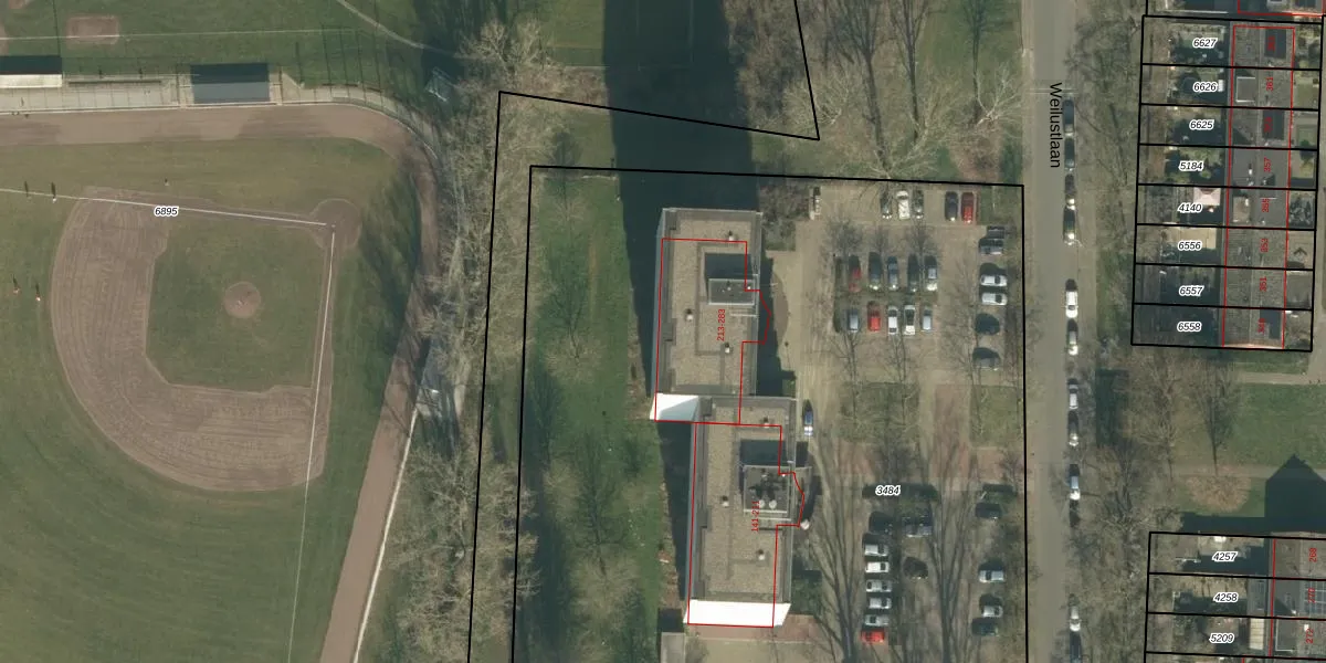 Het perceel waarop Weilustlaan 281 staat heeft een oppervlakte van 6150 m². Dit is een zeer groot perceel. De perceeloppervlakte wordt geregistreerd door het Kadaster. Gedetailleerde informatie over de maten van dit perceel kunt u vinden in het rapport Kadastrale kaart met maatvoering van Weilustlaan 281.