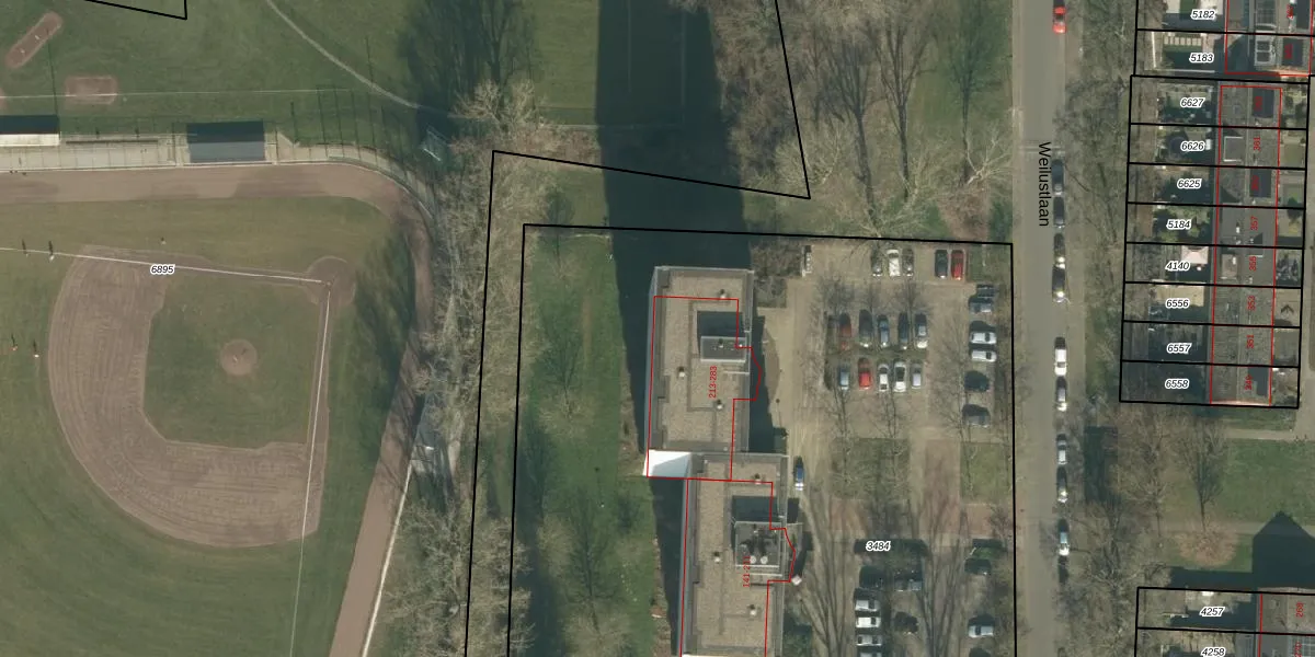 Het perceel waarop Weilustlaan 283 staat heeft een oppervlakte van 6150 m². Dit is een zeer groot perceel. De perceeloppervlakte wordt geregistreerd door het Kadaster. Gedetailleerde informatie over de maten van dit perceel kunt u vinden in het rapport Kadastrale kaart met maatvoering van Weilustlaan 283.