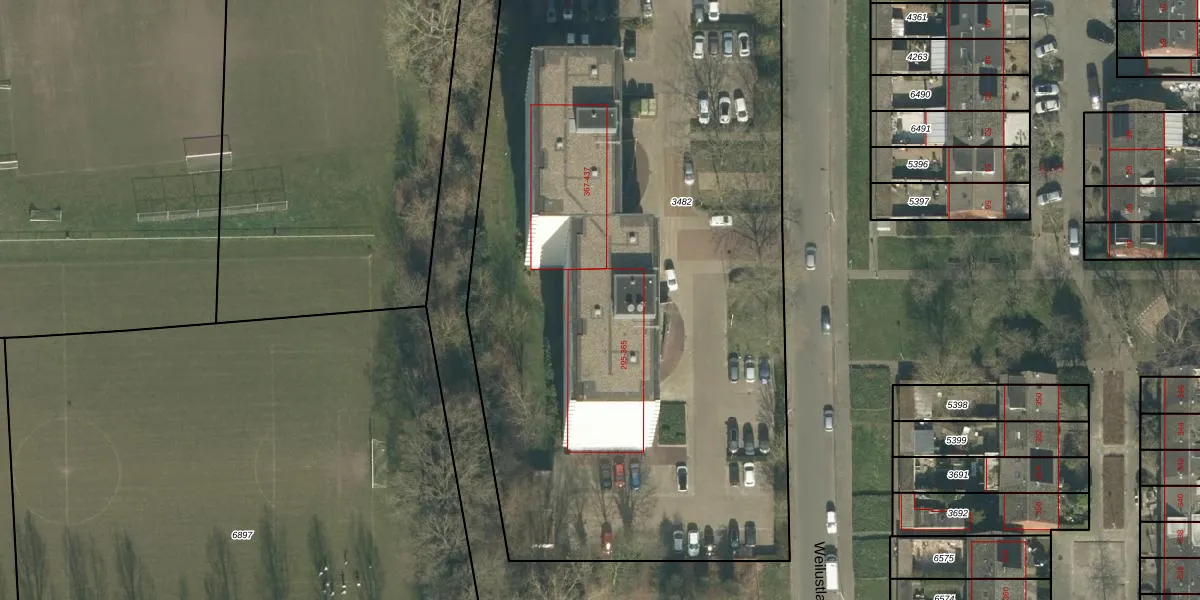 Het perceel waarop Weilustlaan 335 staat heeft een oppervlakte van 5200 m². Dit is een zeer groot perceel. De perceeloppervlakte wordt geregistreerd door het Kadaster. Gedetailleerde informatie over de maten van dit perceel kunt u vinden in het rapport Kadastrale kaart met maatvoering van Weilustlaan 335.
