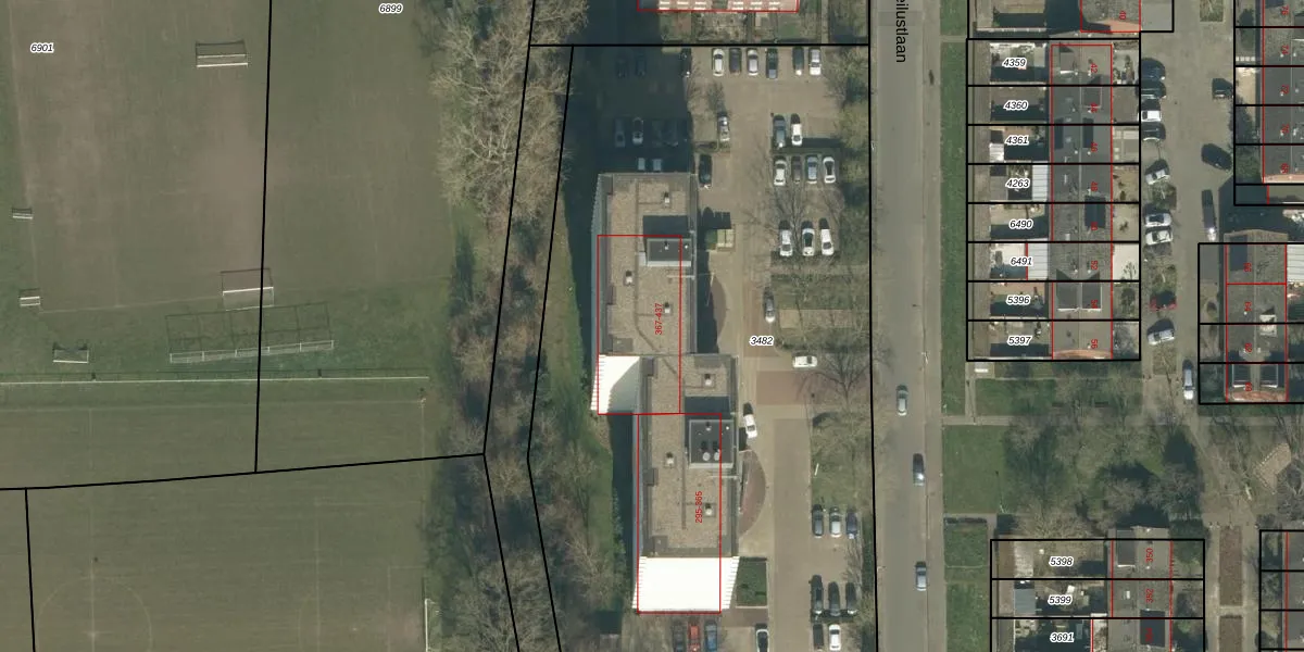 Het perceel waarop Weilustlaan 387 staat heeft een oppervlakte van 5200 m². Dit is een zeer groot perceel. De perceeloppervlakte wordt geregistreerd door het Kadaster. Gedetailleerde informatie over de maten van dit perceel kunt u vinden in het rapport Kadastrale kaart met maatvoering van Weilustlaan 387.
