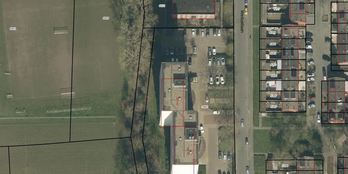 Het perceel waarop Weilustlaan 395 staat heeft een oppervlakte van 5200 m². Dit is een zeer groot perceel. De perceeloppervlakte wordt geregistreerd door het Kadaster. Gedetailleerde informatie over de maten van dit perceel kunt u vinden in het rapport Kadastrale kaart met maatvoering van Weilustlaan 395.