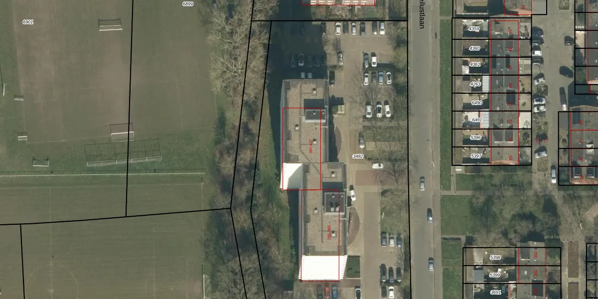 Het perceel waarop Weilustlaan 405 staat heeft een oppervlakte van 5200 m². Dit is een zeer groot perceel. De perceeloppervlakte wordt geregistreerd door het Kadaster. Gedetailleerde informatie over de maten van dit perceel kunt u vinden in het rapport Kadastrale kaart met maatvoering van Weilustlaan 405.