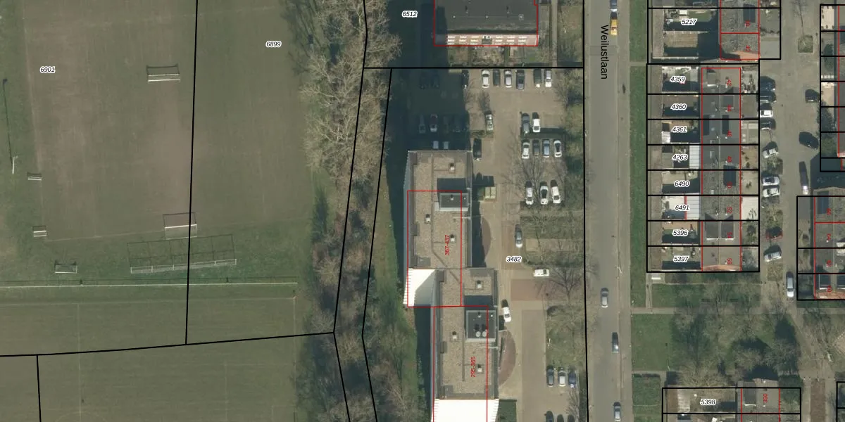 Het perceel waarop Weilustlaan 419 staat heeft een oppervlakte van 5200 m². Dit is een zeer groot perceel. De perceeloppervlakte wordt geregistreerd door het Kadaster. Gedetailleerde informatie over de maten van dit perceel kunt u vinden in het rapport Kadastrale kaart met maatvoering van Weilustlaan 419.