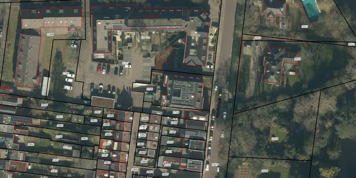 Het perceel waarop Werfstraat 57 staat heeft een oppervlakte van 746 m². Dit is een groot perceel. De perceeloppervlakte wordt geregistreerd door het Kadaster. Gedetailleerde informatie over de maten van dit perceel kunt u vinden in het rapport Kadastrale kaart met maatvoering van Werfstraat 57.