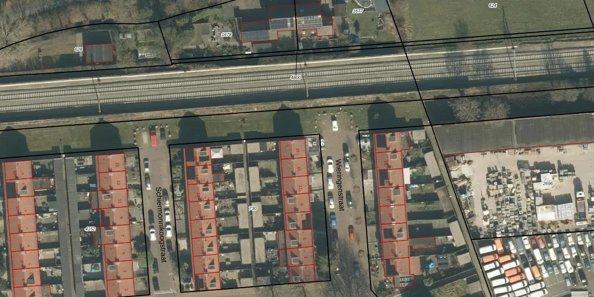 Wieringenstraat 15 is gelegen op kadastraal perceel BDA00G730. Deze kadastrale aanduiding is uniek en wordt gebruikt door het Kadaster om eigendomsrechten en andere zakelijke rechten vast te leggen. Het perceel maakt onderdeel uit van de kadastrale gemeente Breda.
