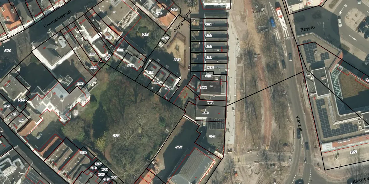 Het perceel waarop Wijngaardhof 47 staat heeft een oppervlakte van 630 m². Dit is een groot perceel. De perceeloppervlakte wordt geregistreerd door het Kadaster. Gedetailleerde informatie over de maten van dit perceel kunt u vinden in het rapport Kadastrale kaart met maatvoering van Wijngaardhof 47.
