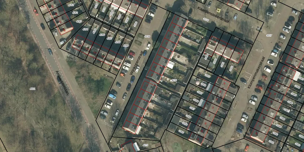 Het perceel waarop Wijnkoperstraat 14 staat heeft een oppervlakte van 2612 m². Dit is een zeer groot perceel. De perceeloppervlakte wordt geregistreerd door het Kadaster. Gedetailleerde informatie over de maten van dit perceel kunt u vinden in het rapport Kadastrale kaart met maatvoering van Wijnkoperstraat 14.