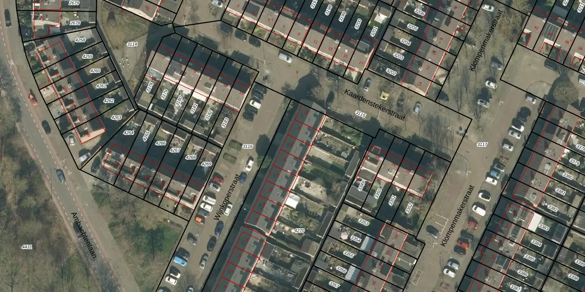 Het perceel waarop Wijnkoperstraat 24 staat heeft een oppervlakte van 2612 m². Dit is een zeer groot perceel. De perceeloppervlakte wordt geregistreerd door het Kadaster. Gedetailleerde informatie over de maten van dit perceel kunt u vinden in het rapport Kadastrale kaart met maatvoering van Wijnkoperstraat 24.