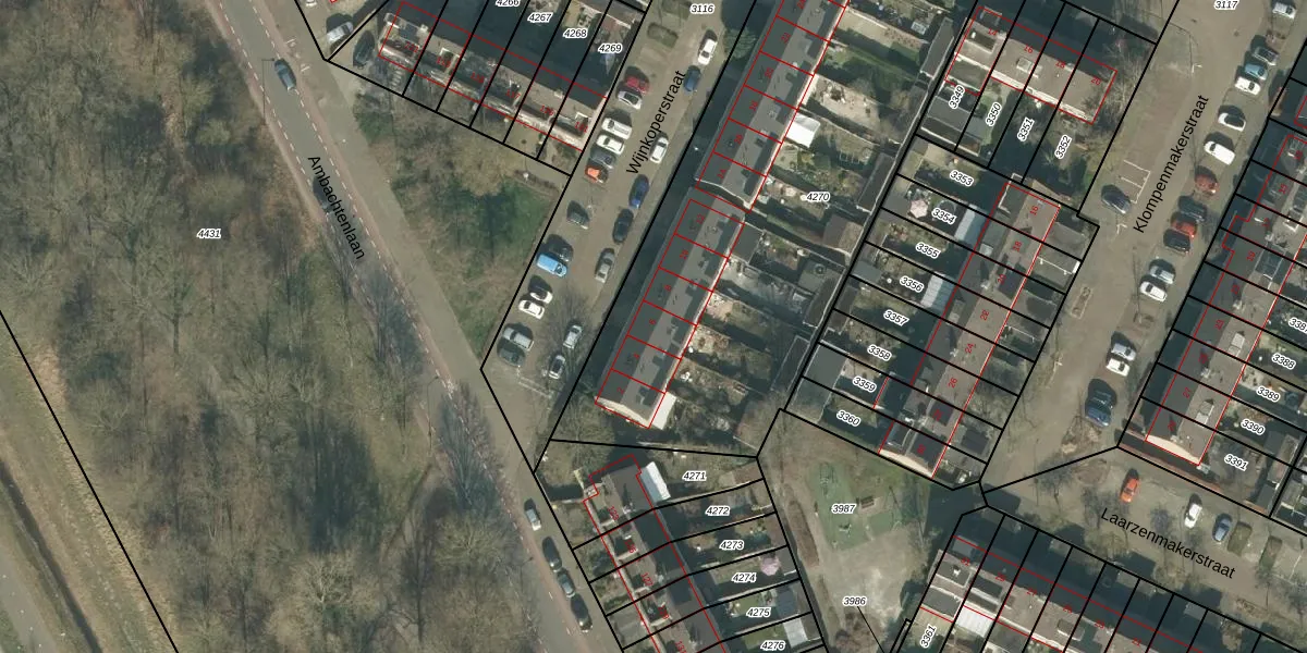 Het perceel waarop Wijnkoperstraat 6 staat heeft een oppervlakte van 2612 m². Dit is een zeer groot perceel. De perceeloppervlakte wordt geregistreerd door het Kadaster. Gedetailleerde informatie over de maten van dit perceel kunt u vinden in het rapport Kadastrale kaart met maatvoering van Wijnkoperstraat 6.