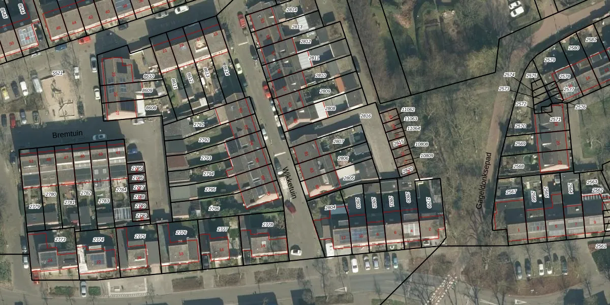 Gebruik de zoekbalk of klik op een perceel voor informatie over de adressen binnen dit perceel.