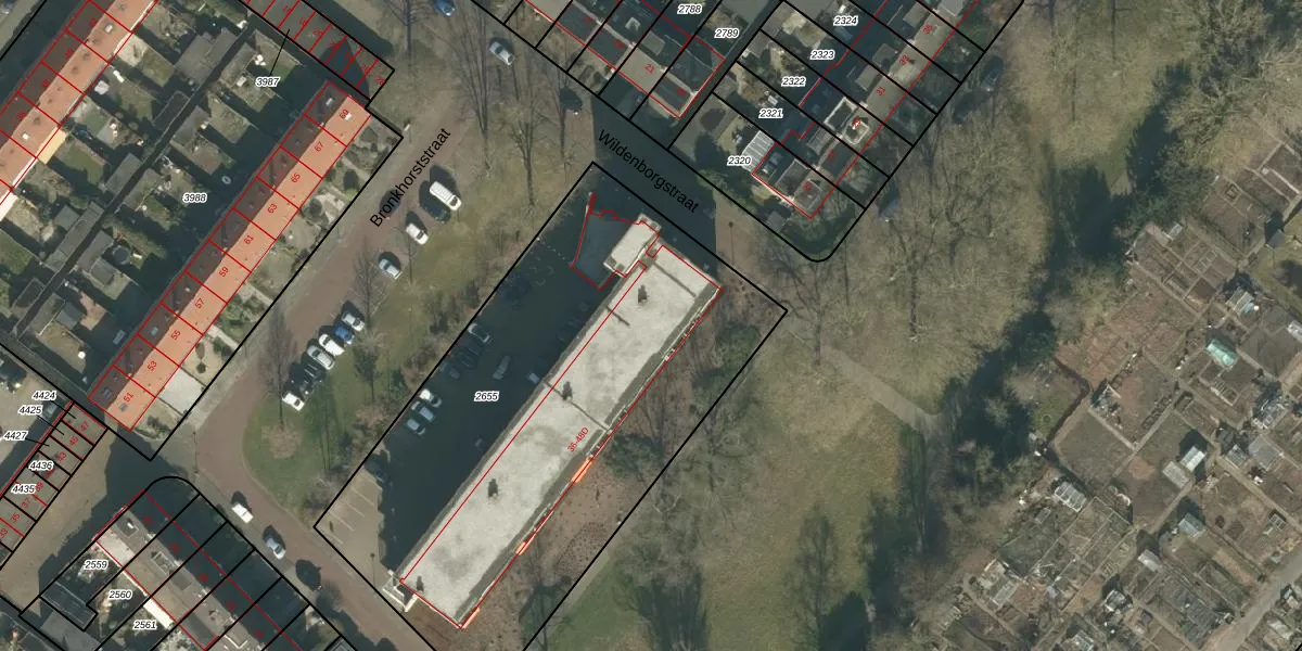 Het perceel waarop Wildenborgstraat 38-A staat heeft een oppervlakte van 2740 m². Dit is een zeer groot perceel. De perceeloppervlakte wordt geregistreerd door het Kadaster. Gedetailleerde informatie over de maten van dit perceel kunt u vinden in het rapport Kadastrale kaart met maatvoering van Wildenborgstraat 38-A.