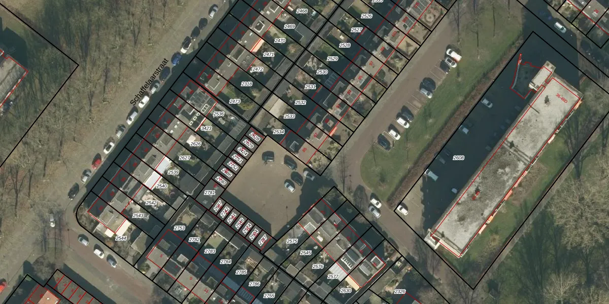 Gebruik de zoekbalk of klik op een perceel voor informatie over de adressen binnen dit perceel.