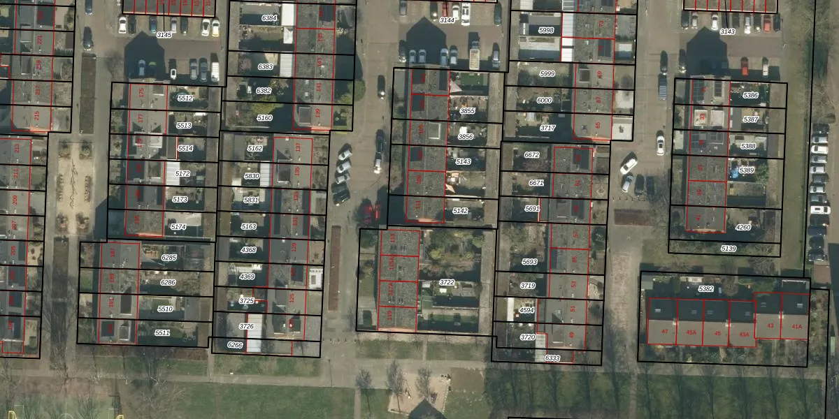 Gebruik de zoekbalk of klik op een perceel voor informatie over de adressen binnen dit perceel.