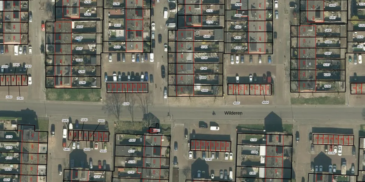 Het perceel waarop Wilderen 174 staat heeft een oppervlakte van 182 m². Dit is een middelgroot perceel. De perceeloppervlakte wordt geregistreerd door het Kadaster. Gedetailleerde informatie over de maten van dit perceel kunt u vinden in het rapport Kadastrale kaart met maatvoering van Wilderen 174.