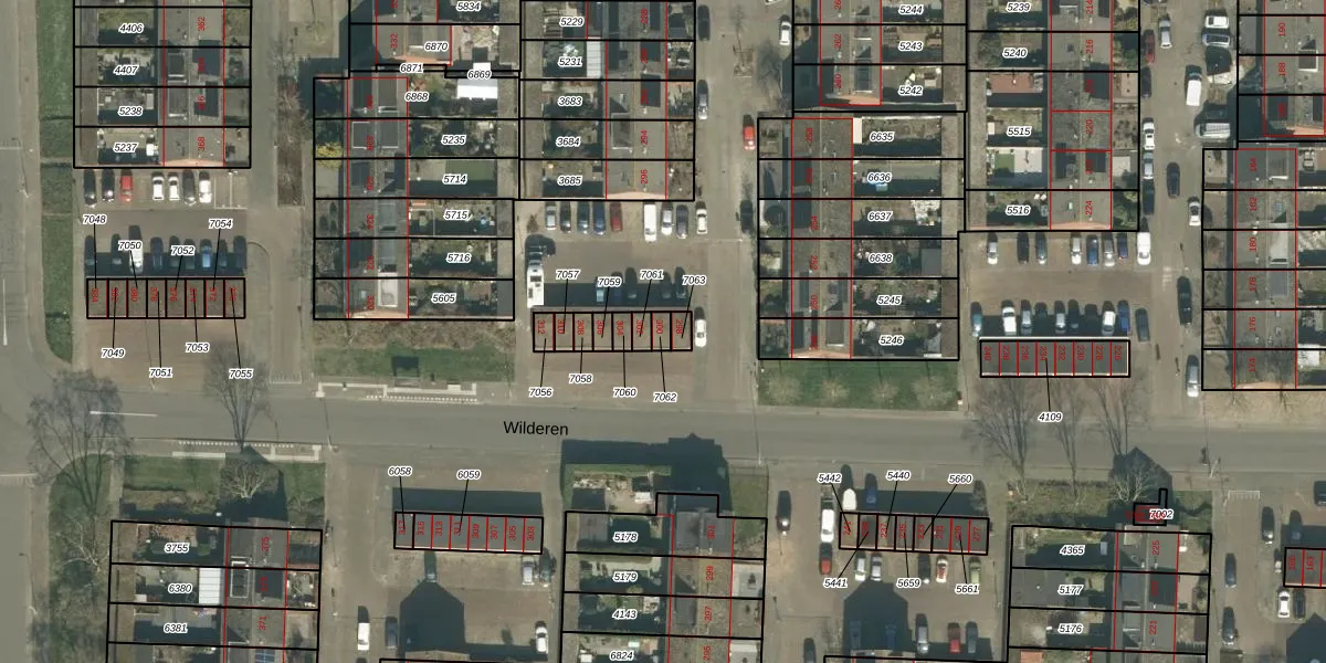Het perceel waarop Wilderen 300 staat heeft een oppervlakte van 18 m². Dit is een klein perceel. De perceeloppervlakte wordt geregistreerd door het Kadaster. Gedetailleerde informatie over de maten van dit perceel kunt u vinden in het rapport Kadastrale kaart met maatvoering van Wilderen 300.