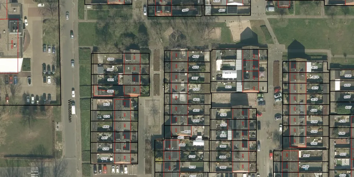 Gebruik de zoekbalk of klik op een perceel voor informatie over de adressen binnen dit perceel.