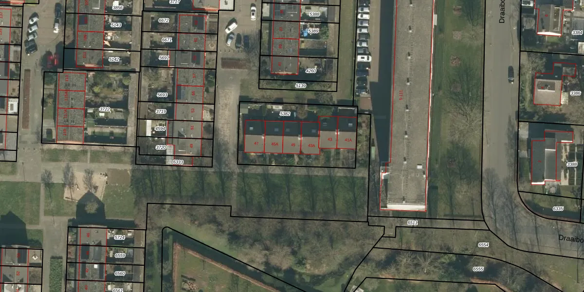 Het perceel waarop Wilderen 45 staat heeft een oppervlakte van 857 m². Dit is een groot perceel. De perceeloppervlakte wordt geregistreerd door het Kadaster. Gedetailleerde informatie over de maten van dit perceel kunt u vinden in het rapport Kadastrale kaart met maatvoering van Wilderen 45.