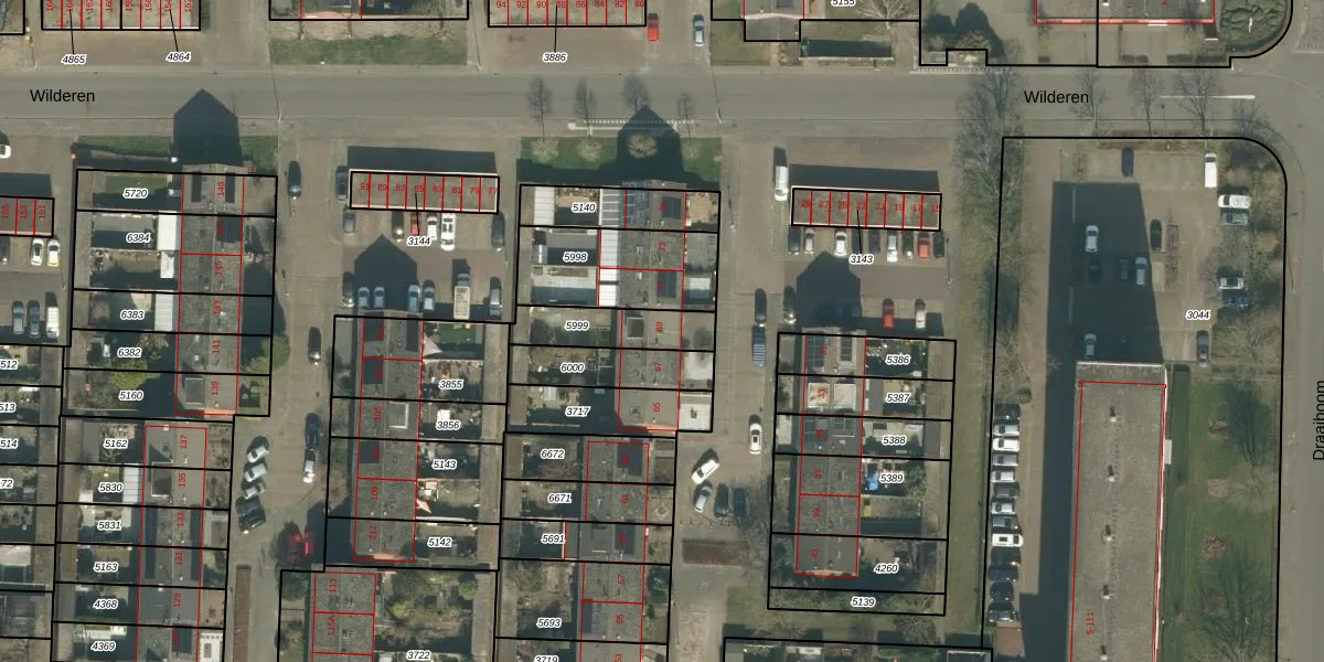 Gebruik de zoekbalk of klik op een perceel voor informatie over de adressen binnen dit perceel.