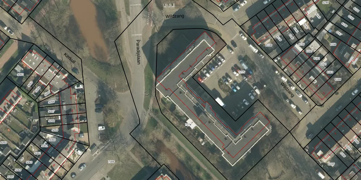 Het perceel waarop Wildzang 44 staat heeft een oppervlakte van 2960 m². Dit is een zeer groot perceel. De perceeloppervlakte wordt geregistreerd door het Kadaster. Gedetailleerde informatie over de maten van dit perceel kunt u vinden in het rapport Kadastrale kaart met maatvoering van Wildzang 44.