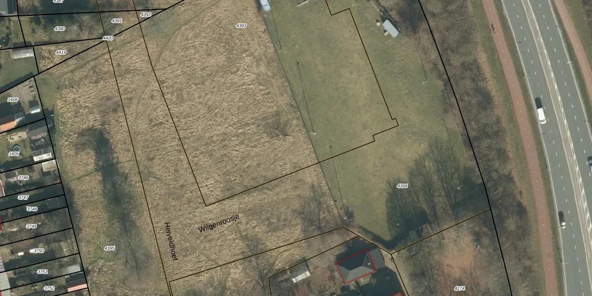 Het perceel waarop Wilgenroosje 37 staat heeft een oppervlakte van 4440 m². Dit is een zeer groot perceel. De perceeloppervlakte wordt geregistreerd door het Kadaster. Gedetailleerde informatie over de maten van dit perceel kunt u vinden in het rapport Kadastrale kaart met maatvoering van Wilgenroosje 37.