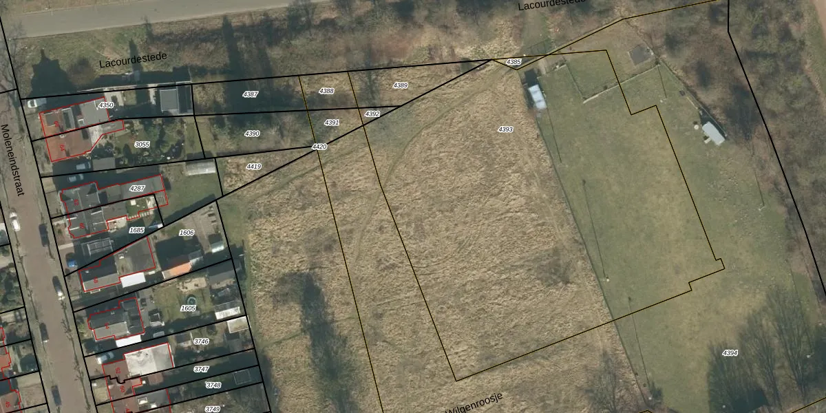 Het perceel waarop Wilgenroosje 41 staat heeft een oppervlakte van 4440 m². Dit is een zeer groot perceel. De perceeloppervlakte wordt geregistreerd door het Kadaster. Gedetailleerde informatie over de maten van dit perceel kunt u vinden in het rapport Kadastrale kaart met maatvoering van Wilgenroosje 41.