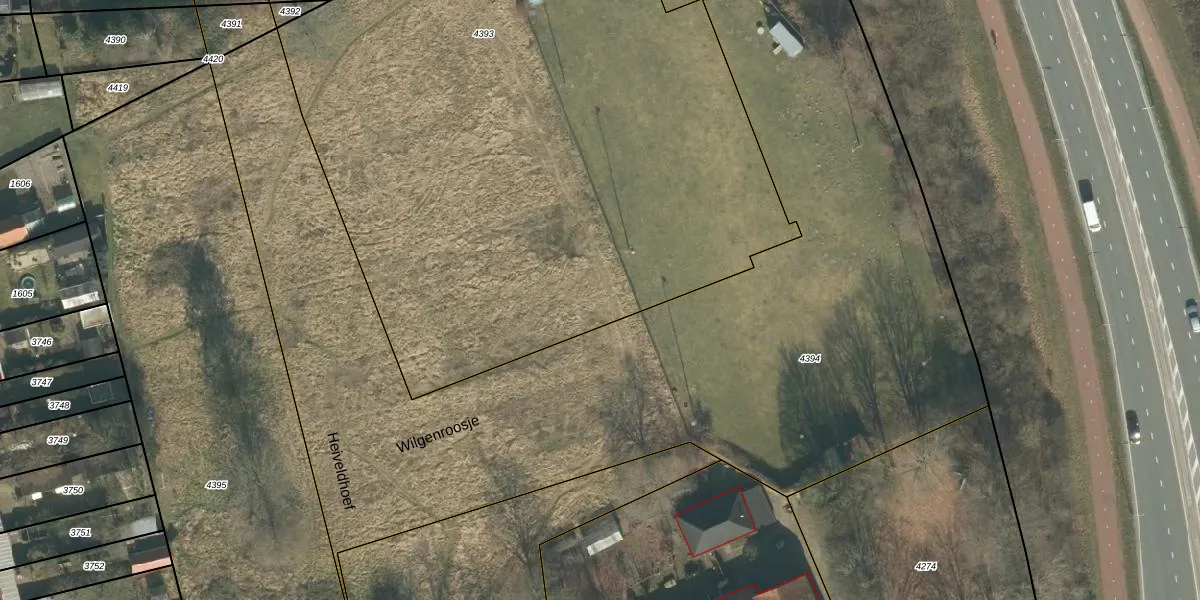 Het perceel waarop Wilgenroosje 59 staat heeft een oppervlakte van 4440 m². Dit is een zeer groot perceel. De perceeloppervlakte wordt geregistreerd door het Kadaster. Gedetailleerde informatie over de maten van dit perceel kunt u vinden in het rapport Kadastrale kaart met maatvoering van Wilgenroosje 59.