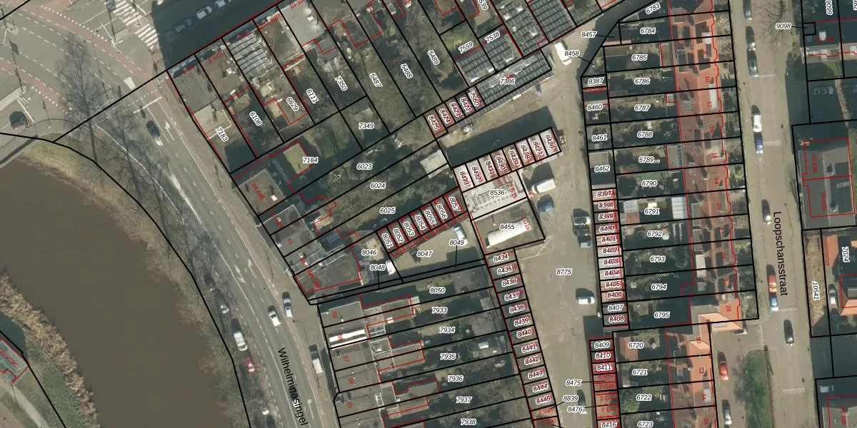 Gebruik de zoekbalk of klik op een perceel voor informatie over de adressen binnen dit perceel.