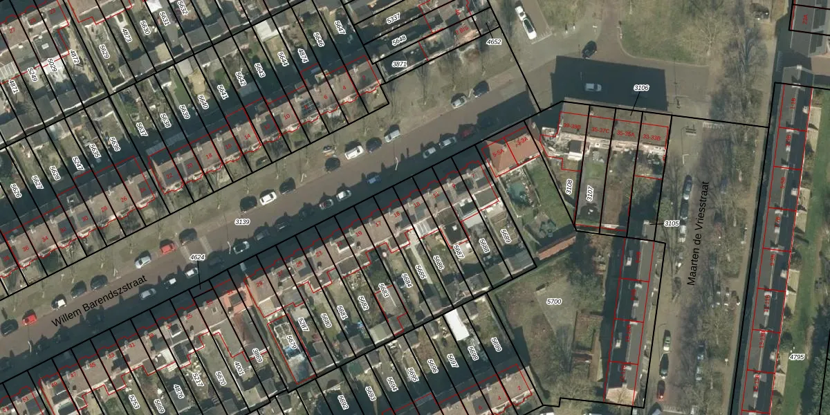 Het perceel waarop Willem Barendszstraat 13 staat heeft een oppervlakte van 174 m². Dit is een middelgroot perceel. De perceeloppervlakte wordt geregistreerd door het Kadaster. Gedetailleerde informatie over de maten van dit perceel kunt u vinden in het rapport Kadastrale kaart met maatvoering van Willem Barendszstraat 13.
