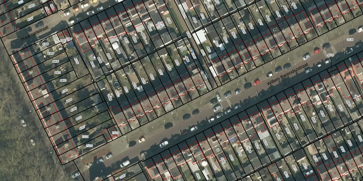Het perceel waarop Willem Barendszstraat 50 staat heeft een oppervlakte van 174 m². Dit is een middelgroot perceel. De perceeloppervlakte wordt geregistreerd door het Kadaster. Gedetailleerde informatie over de maten van dit perceel kunt u vinden in het rapport Kadastrale kaart met maatvoering van Willem Barendszstraat 50.