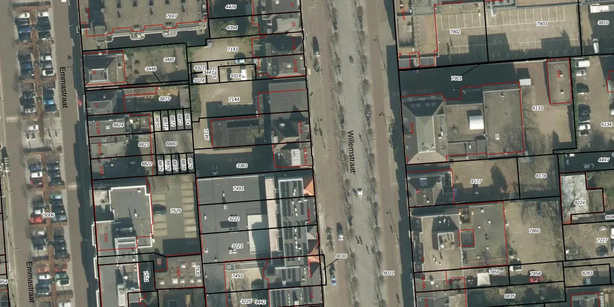 Willemstraat 15 is gelegen op kadastraal perceel BDA00B3383. Deze kadastrale aanduiding is uniek en wordt gebruikt door het Kadaster om eigendomsrechten en andere zakelijke rechten vast te leggen. Het perceel maakt onderdeel uit van de kadastrale gemeente Breda.