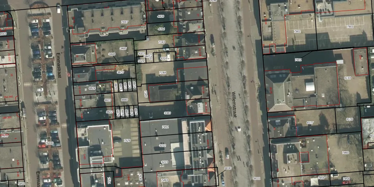 Het perceel waarop Willemstraat 17-B staat heeft een oppervlakte van 375 m². Dit is een groot perceel. De perceeloppervlakte wordt geregistreerd door het Kadaster. Gedetailleerde informatie over de maten van dit perceel kunt u vinden in het rapport Kadastrale kaart met maatvoering van Willemstraat 17-B.
