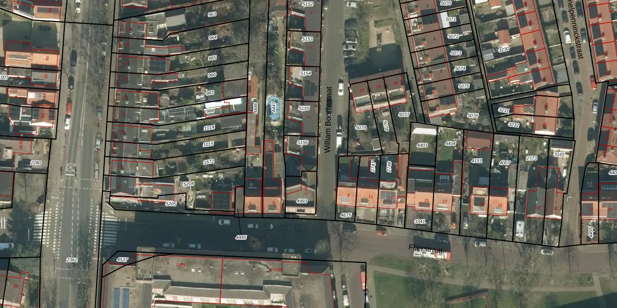 William Boothstraat 2 is gelegen op kadastraal perceel PCH00I5156. Deze kadastrale aanduiding is uniek en wordt gebruikt door het Kadaster om eigendomsrechten en andere zakelijke rechten vast te leggen. Het perceel maakt onderdeel uit van de kadastrale gemeente Princenhage.