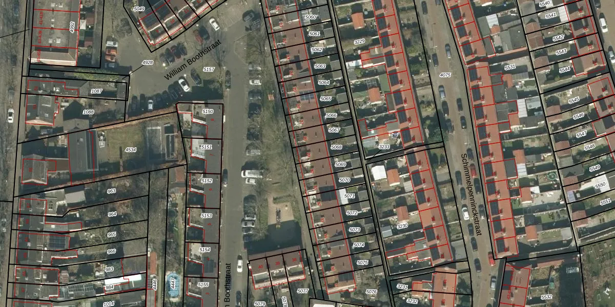 Gebruik de zoekbalk of klik op een perceel voor informatie over de adressen binnen dit perceel.