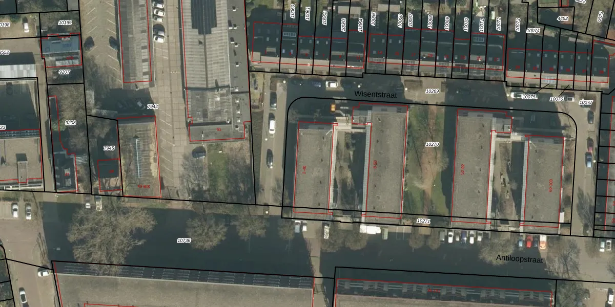 Het perceel waarop Wisentstraat 36 staat heeft een oppervlakte van 3360 m². Dit is een zeer groot perceel. De perceeloppervlakte wordt geregistreerd door het Kadaster. Gedetailleerde informatie over de maten van dit perceel kunt u vinden in het rapport Kadastrale kaart met maatvoering van Wisentstraat 36.