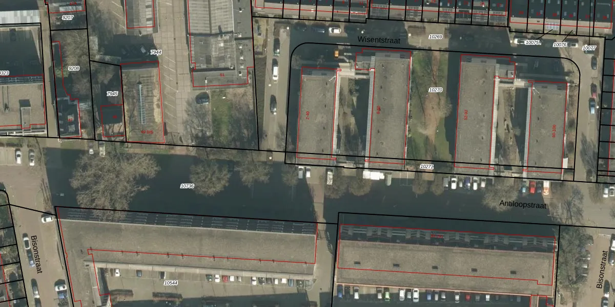 Het perceel waarop Wisentstraat 40 staat heeft een oppervlakte van 3360 m². Dit is een zeer groot perceel. De perceeloppervlakte wordt geregistreerd door het Kadaster. Gedetailleerde informatie over de maten van dit perceel kunt u vinden in het rapport Kadastrale kaart met maatvoering van Wisentstraat 40.