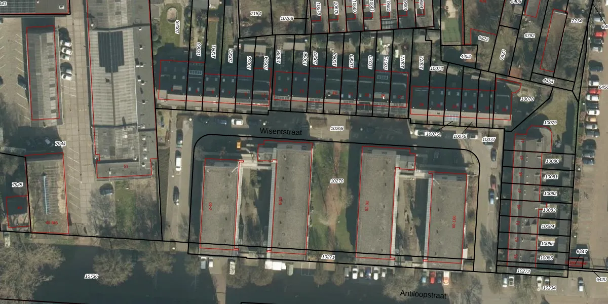 Het perceel waarop Wisentstraat 8 staat heeft een oppervlakte van 3360 m². Dit is een zeer groot perceel. De perceeloppervlakte wordt geregistreerd door het Kadaster. Gedetailleerde informatie over de maten van dit perceel kunt u vinden in het rapport Kadastrale kaart met maatvoering van Wisentstraat 8.