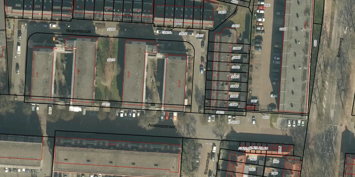 Het perceel waarop Wisentstraat 80 staat heeft een oppervlakte van 3360 m². Dit is een zeer groot perceel. De perceeloppervlakte wordt geregistreerd door het Kadaster. Gedetailleerde informatie over de maten van dit perceel kunt u vinden in het rapport Kadastrale kaart met maatvoering van Wisentstraat 80.