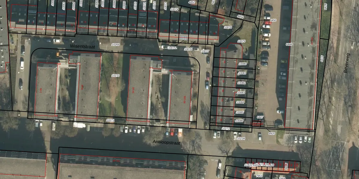 Het perceel waarop Wisentstraat 96 staat heeft een oppervlakte van 3360 m². Dit is een zeer groot perceel. De perceeloppervlakte wordt geregistreerd door het Kadaster. Gedetailleerde informatie over de maten van dit perceel kunt u vinden in het rapport Kadastrale kaart met maatvoering van Wisentstraat 96.
