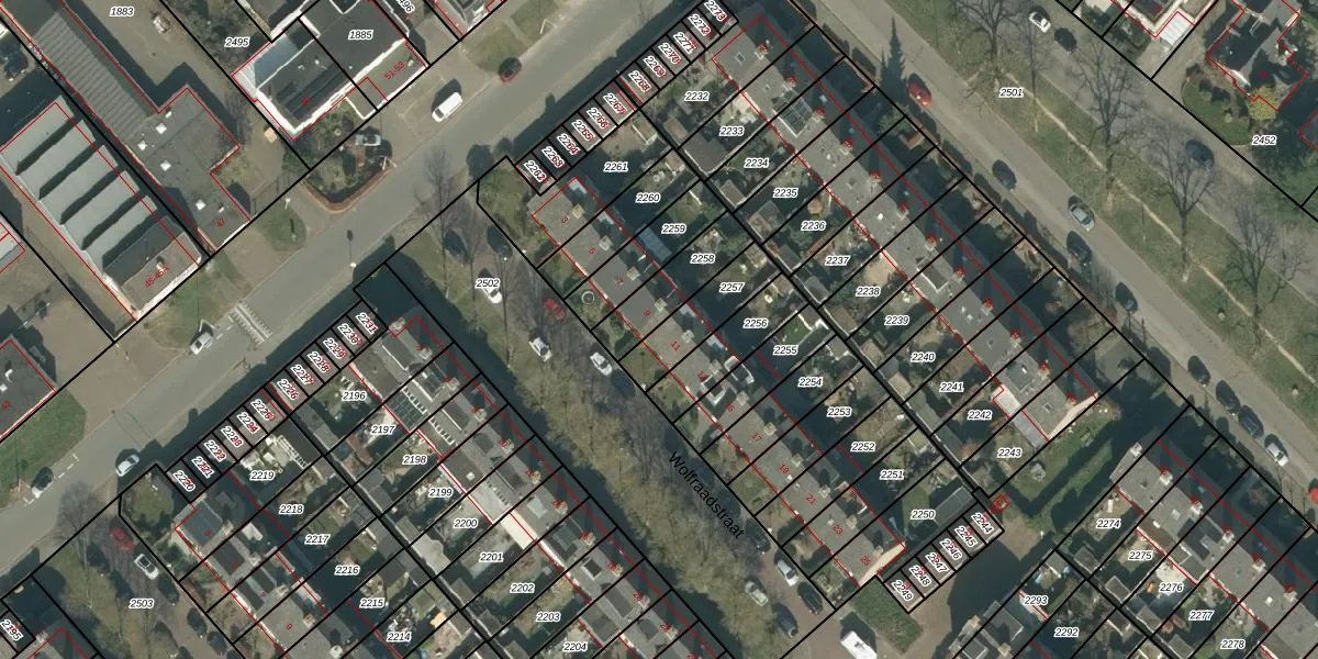Het perceel waarop Wolfraadstraat 11 staat heeft een oppervlakte van 174 m². Dit is een middelgroot perceel. De perceeloppervlakte wordt geregistreerd door het Kadaster. Gedetailleerde informatie over de maten van dit perceel kunt u vinden in het rapport Kadastrale kaart met maatvoering van Wolfraadstraat 11.