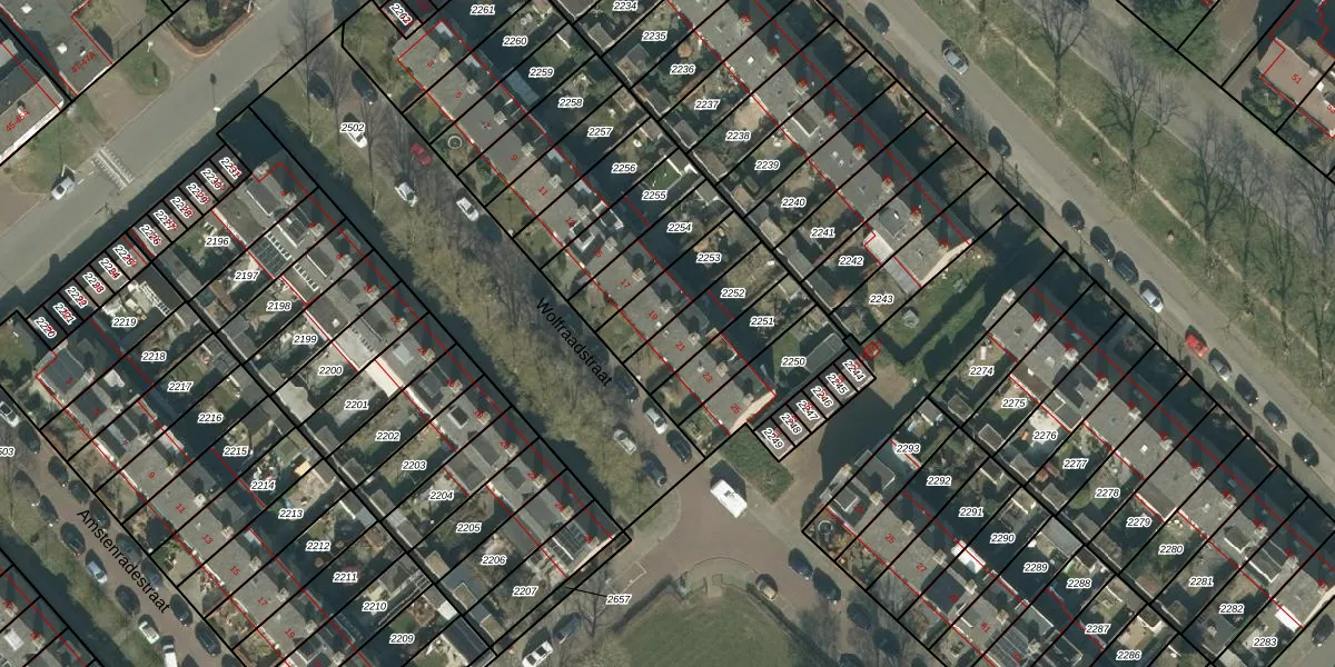 Het perceel waarop Wolfraadstraat 21 staat heeft een oppervlakte van 174 m². Dit is een middelgroot perceel. De perceeloppervlakte wordt geregistreerd door het Kadaster. Gedetailleerde informatie over de maten van dit perceel kunt u vinden in het rapport Kadastrale kaart met maatvoering van Wolfraadstraat 21.