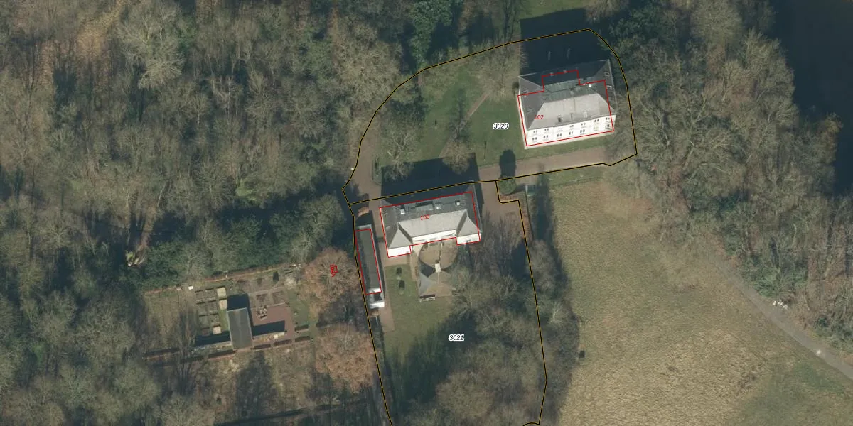Het perceel waarop Wolfslaardreef 100 staat heeft een oppervlakte van 2412 m². Dit is een zeer groot perceel. De perceeloppervlakte wordt geregistreerd door het Kadaster. Gedetailleerde informatie over de maten van dit perceel kunt u vinden in het rapport Kadastrale kaart met maatvoering van Wolfslaardreef 100.