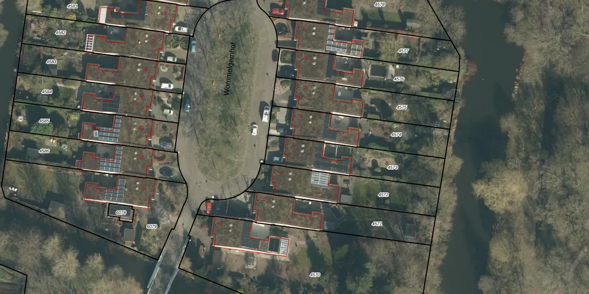 Het perceel waarop Wommelgemhof 13 staat heeft een oppervlakte van 604 m². Dit is een groot perceel. De perceeloppervlakte wordt geregistreerd door het Kadaster. Gedetailleerde informatie over de maten van dit perceel kunt u vinden in het rapport Kadastrale kaart met maatvoering van Wommelgemhof 13.