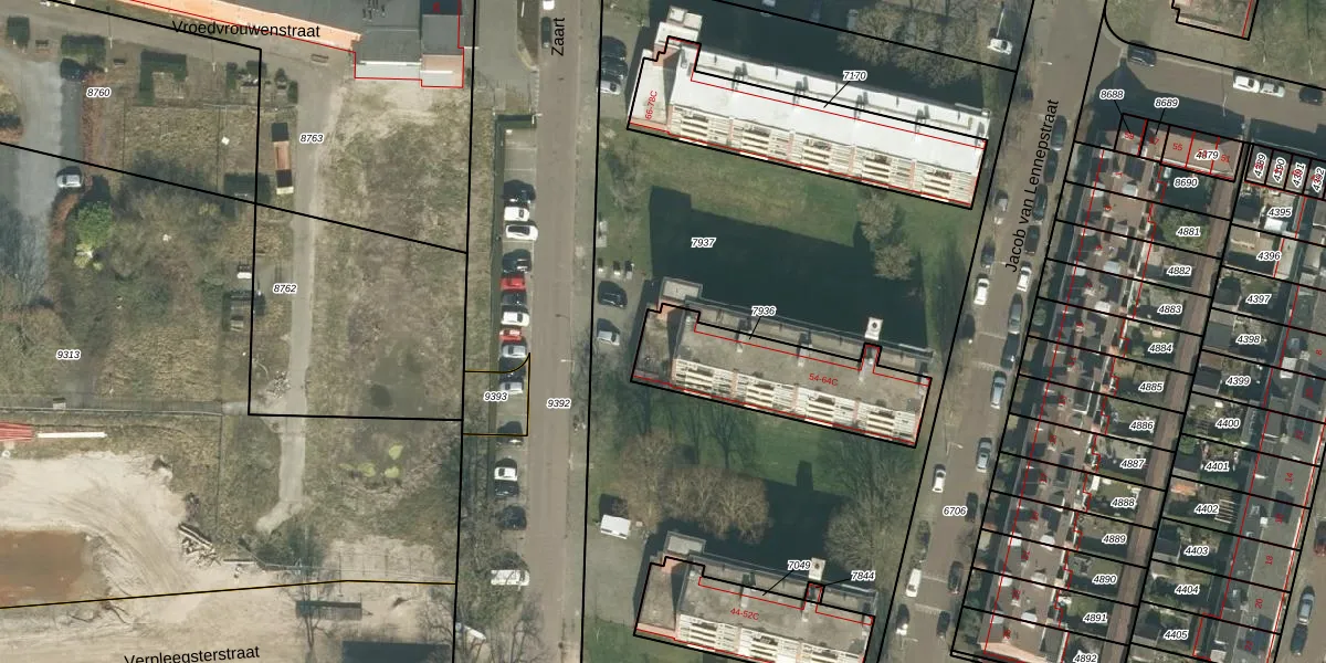 Het perceel waarop Zaart 56 staat heeft een oppervlakte van 500 m². Dit is een groot perceel. De perceeloppervlakte wordt geregistreerd door het Kadaster. Gedetailleerde informatie over de maten van dit perceel kunt u vinden in het rapport Kadastrale kaart met maatvoering van Zaart 56.