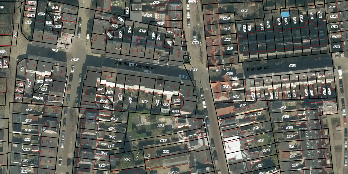 Zandbergdwarsstraat 1 is gelegen op kadastraal perceel BDA00D3800. Deze kadastrale aanduiding is uniek en wordt gebruikt door het Kadaster om eigendomsrechten en andere zakelijke rechten vast te leggen. Het perceel maakt onderdeel uit van de kadastrale gemeente Breda.