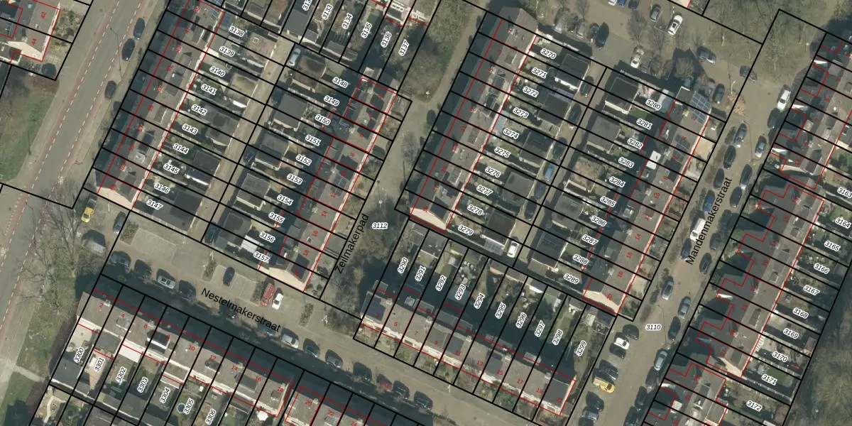 Gebruik de zoekbalk of klik op een perceel voor informatie over de adressen binnen dit perceel.