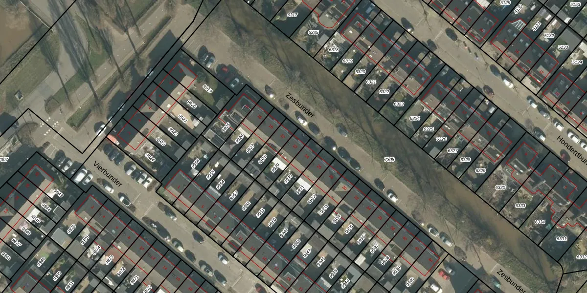 Zesbunder 22 is gelegen op kadastraal perceel BDA00H9929. Deze kadastrale aanduiding is uniek en wordt gebruikt door het Kadaster om eigendomsrechten en andere zakelijke rechten vast te leggen. Het perceel maakt onderdeel uit van de kadastrale gemeente Breda.