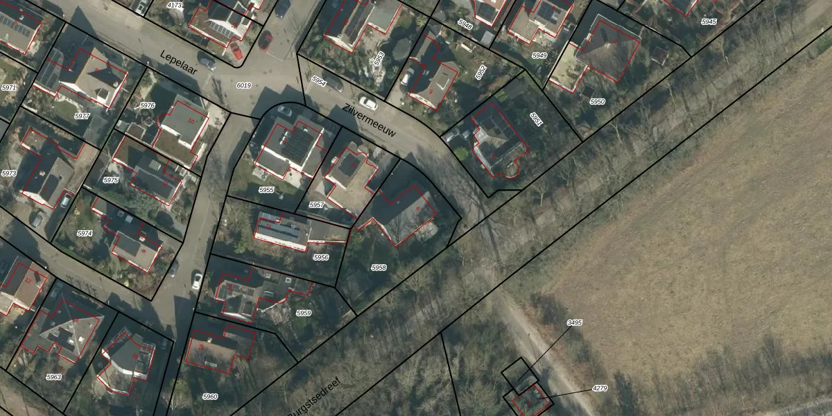 Het perceel waarop Zilvermeeuw 6 staat heeft een oppervlakte van 604 m². Dit is een groot perceel. De perceeloppervlakte wordt geregistreerd door het Kadaster. Gedetailleerde informatie over de maten van dit perceel kunt u vinden in het rapport Kadastrale kaart met maatvoering van Zilvermeeuw 6.
