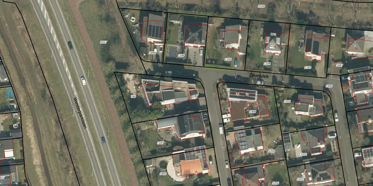 Het perceel waarop Zilvervlek 25-A staat heeft een oppervlakte van 976 m². Dit is een groot perceel. De perceeloppervlakte wordt geregistreerd door het Kadaster. Gedetailleerde informatie over de maten van dit perceel kunt u vinden in het rapport Kadastrale kaart met maatvoering van Zilvervlek 25-A.