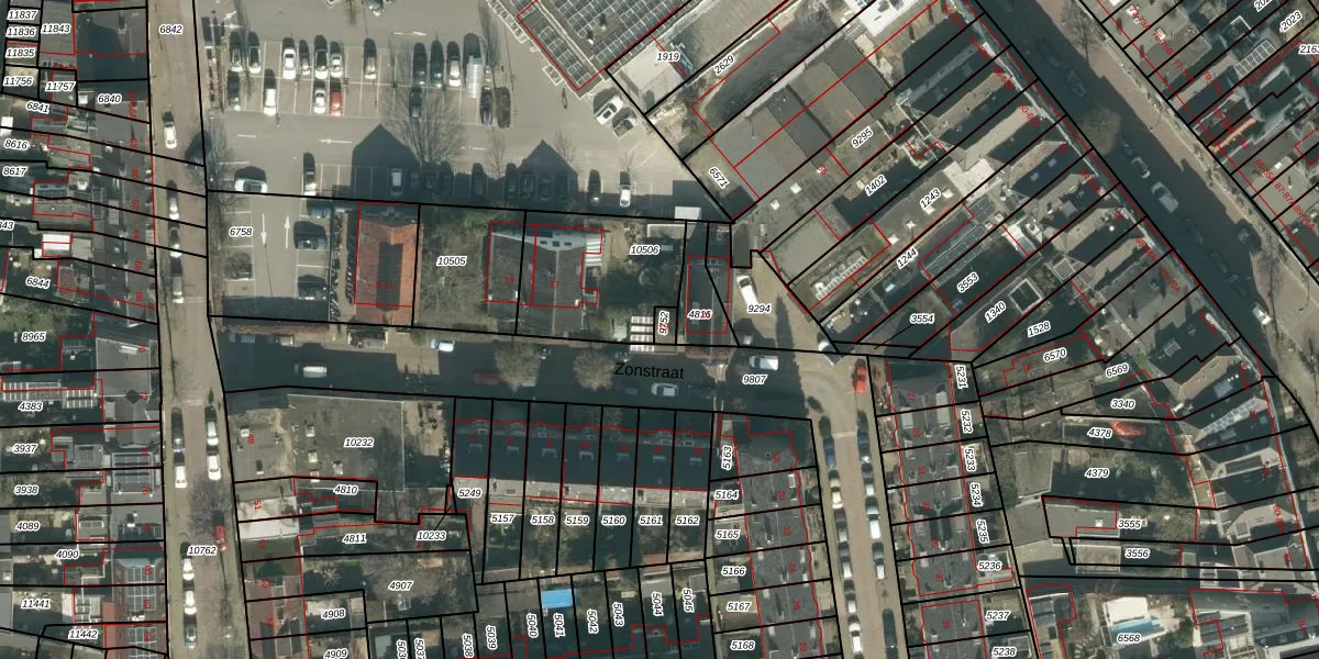 Zonstraat 19 is gelegen op kadastraal perceel BDA00D9752. Deze kadastrale aanduiding is uniek en wordt gebruikt door het Kadaster om eigendomsrechten en andere zakelijke rechten vast te leggen. Het perceel maakt onderdeel uit van de kadastrale gemeente Breda.