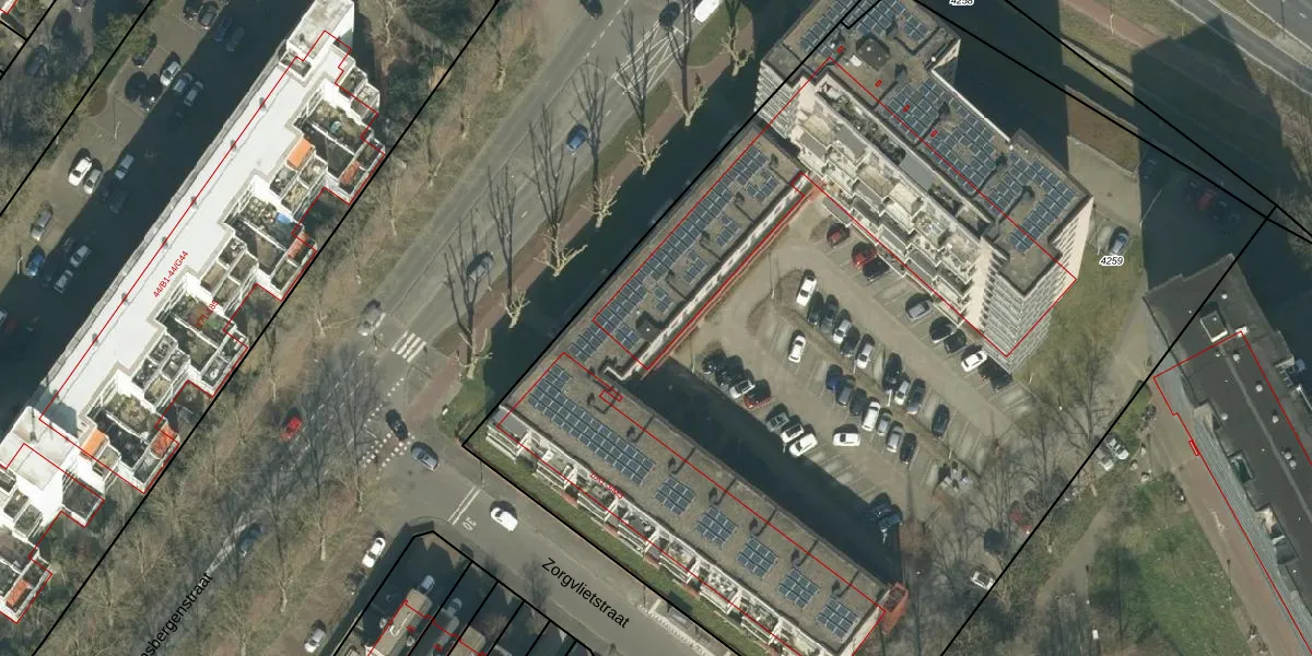 Het perceel waarop Zorgvlietstraat 1-B9 staat heeft een oppervlakte van 7250 m². Dit is een zeer groot perceel. De perceeloppervlakte wordt geregistreerd door het Kadaster. Gedetailleerde informatie over de maten van dit perceel kunt u vinden in het rapport Kadastrale kaart met maatvoering van Zorgvlietstraat 1-B9.